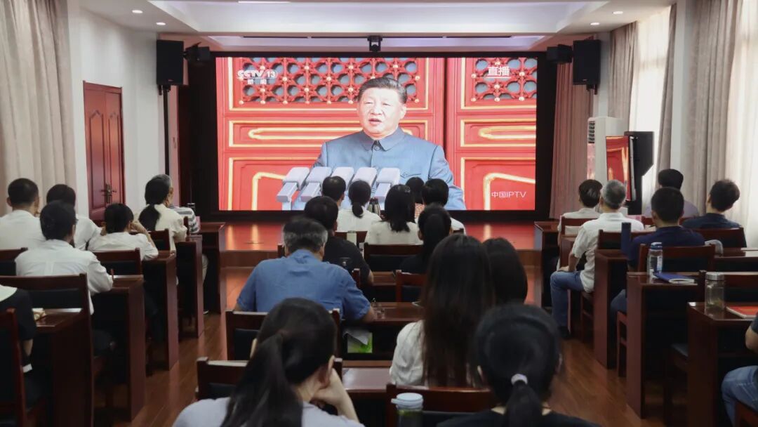 9月3日上午9时,南昌铁路运输检察院组织全院干警集体收看这场庄严盛典。干警们全神贯注,认真聆听习近平总书记重要讲话。阅兵仪式上雄师列阵,气势如虹;铁流滚滚,战鹰呼啸,展现了中国军队的钢铁意志和强大实力,彰显了中国人民奔向强国复兴的光明前景。大家纷纷表示,本次大会是中国式现代化伟大成果的集中展示,令人心潮澎湃、无比振奋。要把从中汲取到的民族自豪和爱国热情转化为忠诚履职、锐意进取的不竭动力,以担当实干为推动检察工作高质量发展作出新的更大贡献。