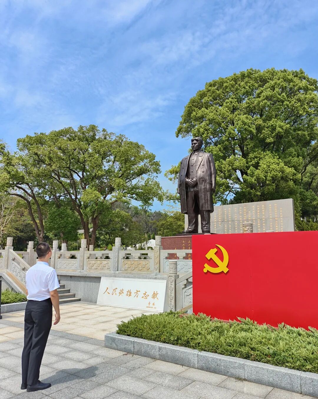 在中国人民抗日战争暨世界反法西斯战争胜利80周年之际,我怀着崇敬的心情,走进方志敏烈士纪念园。纪念园内松柏苍翠、庄严肃穆,沿着台阶缓步而上,方志敏烈士的高大雕像巍然屹立,目光坚毅,仿佛仍在凝视着这片他深爱并为之奋斗的土地。