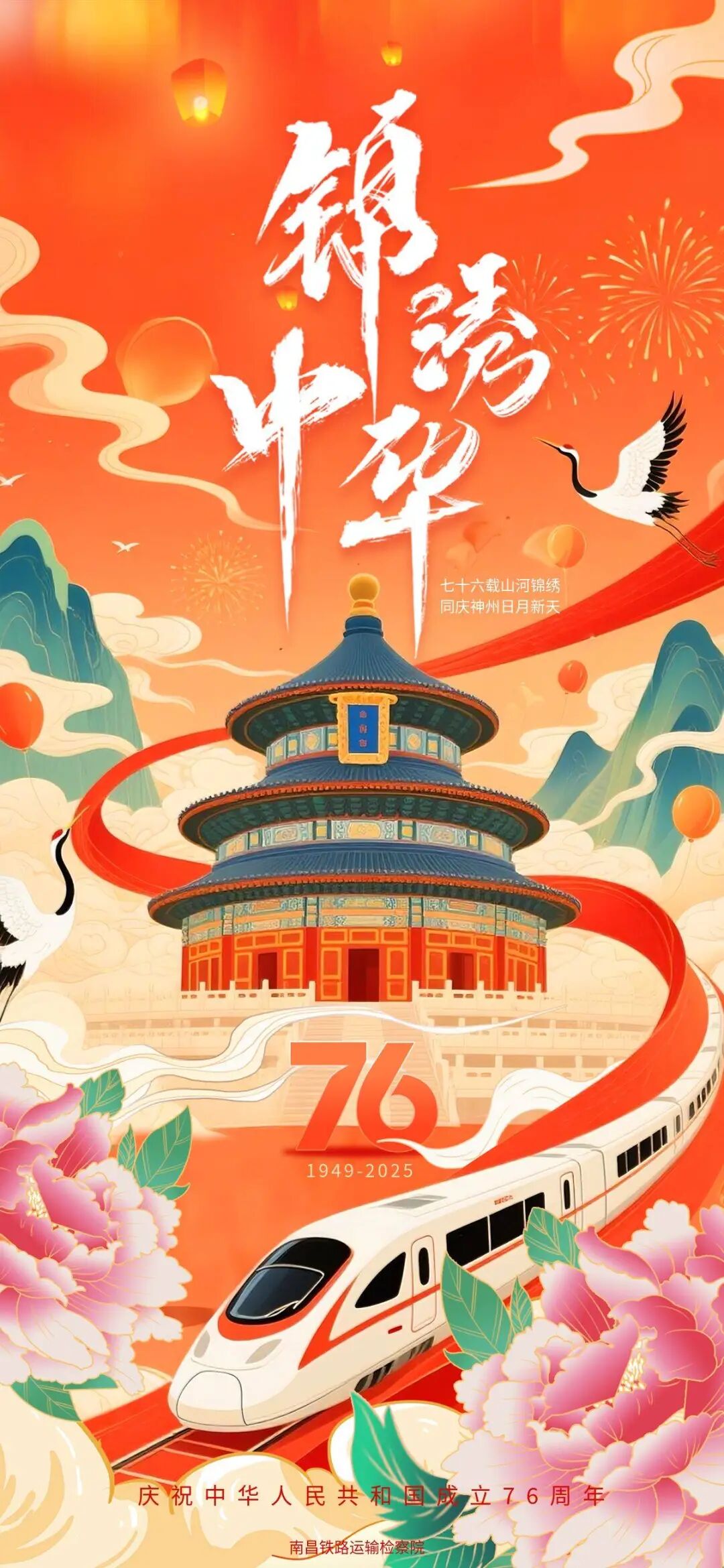 今天是中华人民共和国成立76周年,南昌铁路运输检察院全体干警祝愿伟大的祖国繁荣昌盛,人民幸福安康!