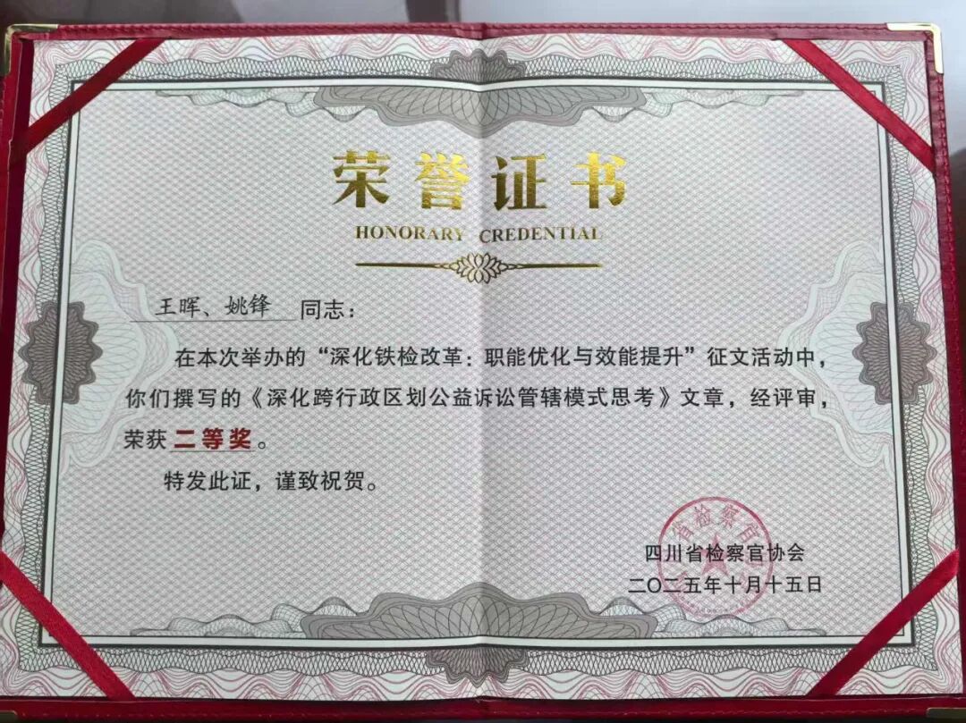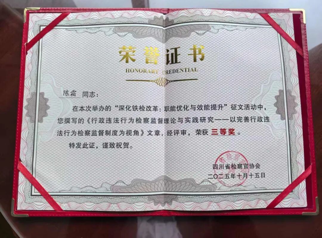 为深入贯彻落实最高人民检察院《关于全面深化检察改革、进一步加强新时代检察工作的意见》精神,推动铁路检察改革向纵深发展,2025年10月23日,第六届西部铁检论坛在四川成都召开。论坛紧密围绕“深化铁检改革:职能优化与效能提升”展开,共话全国铁检的发展与改革。南昌铁路运输检察院积极组织干警撰写论文参加论坛,分别获得二等奖一篇;三等奖一篇;优秀奖四篇。