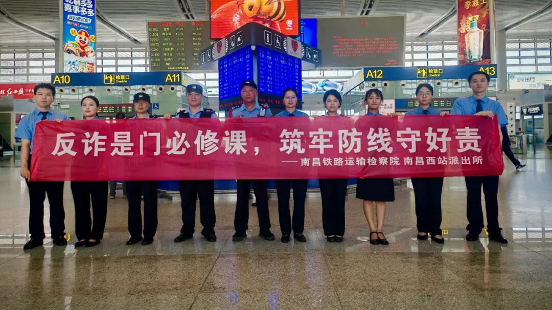 为积极响应中宣部、公安部“全民反诈在行动”集中宣传月工作部署,提升社会公众尤其是学生群体的防范意识和反诈能力,近日,南昌铁路运输检察院联合南昌西车站派出所在南昌西站开展以“反诈是门必修课 筑牢防线守好责”为主题的反诈宣传活动。