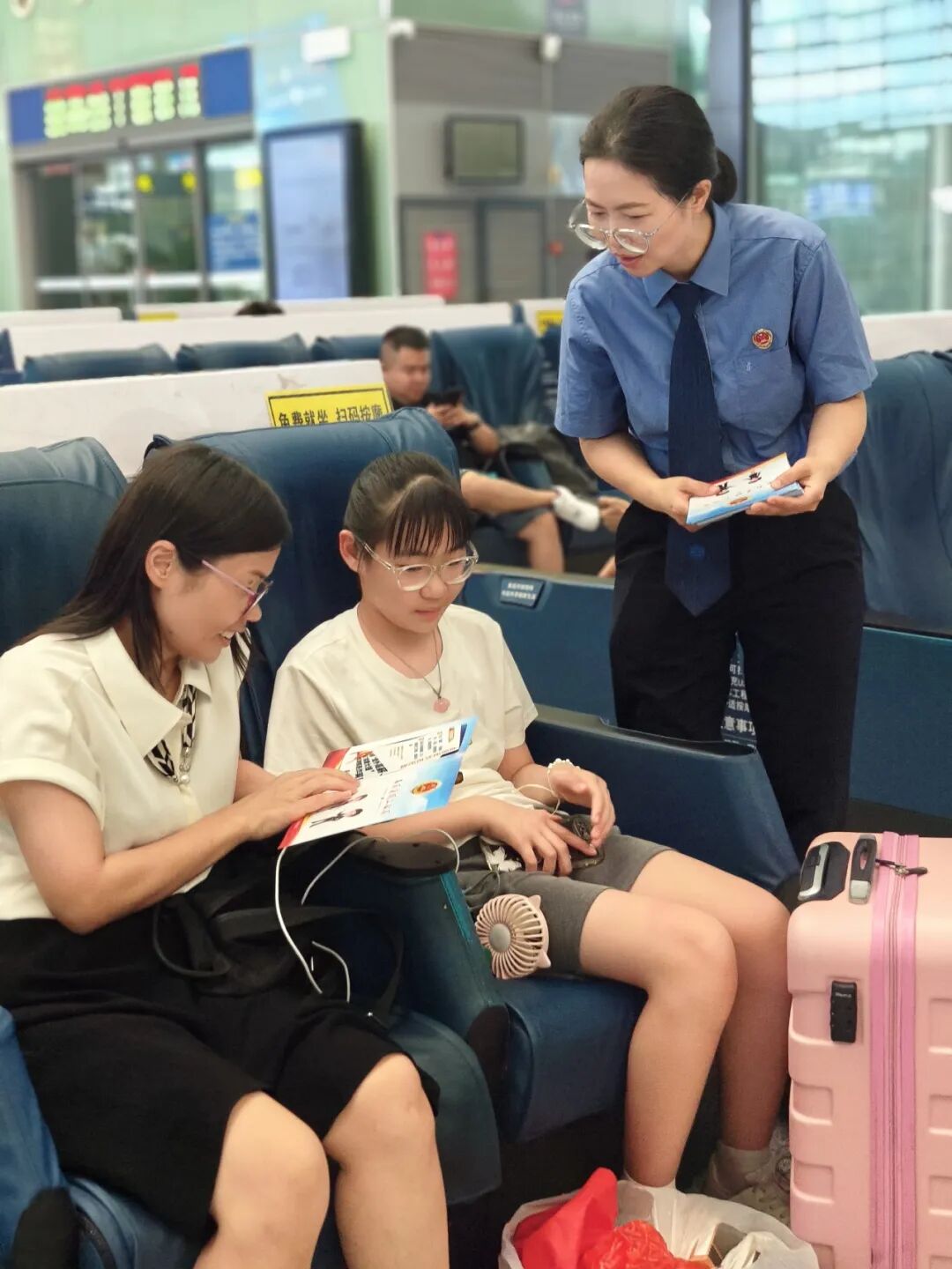 当前正值暑假,正是“高薪兼职”、“境外务工”、“免费旅游”等针对学生群体的跨境电信网络诈骗案件的高发期,检察干警在候车大厅及安检口等位置向来往旅客发放宣传册,普及当前跨境电信网络诈骗的新面目、新手法,同时提醒广大旅客朋友切勿轻信境外高薪诱惑,远离不法出入境中介,认清非法出境危害,守住法律和安全底线。