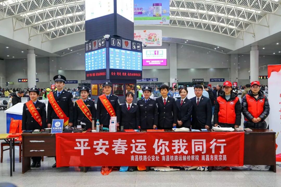 1月26日是2024年春运首日,为进一步服务好春运期间旅客运输工作,确保旅客平安健康出行,文明规范乘车,营造安全出行氛围,在江西省人民检察院南昌铁路运输分院统一部署下,南昌铁路检察院会同南昌铁路公安处、南昌市民宗局在南昌站开展了“平安春运 你我同行”春运首日主题活动。