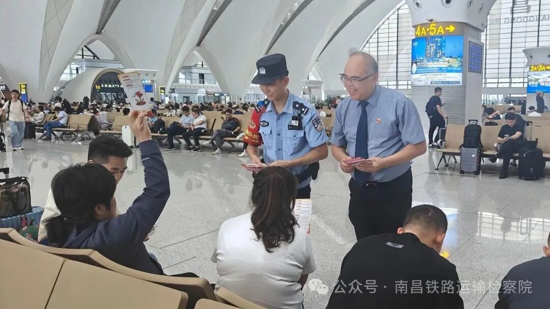 2025年5月是第五个“民法典宣传月”。为推动民法典走到群众身边、融入日常生活,提升旅客法治意识,近日,南昌铁路运输检察院联合南昌铁路公安处在南昌东站共同开展“美好生活·民法典相伴”主题民法典宣传月活动,将法律服务送到旅客身边,为旅客送上法治出行“大礼包”。