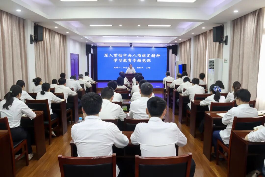 近日,南昌铁路运输检察院分党组书记、检察长王晖同志以“锲而不舍落实中央八项规定精神 以过硬作风护航南昌铁检工作高质量发展”为主题,为院机关全体干警讲学习教育专题党课。