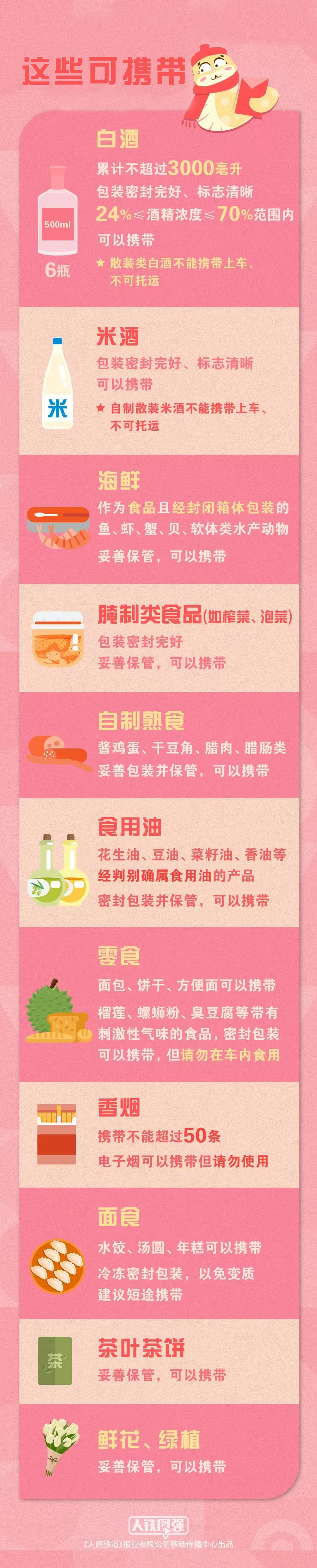 注意!礼花弹、烟花、鞭炮、拉炮等各类烟花爆竹和管制刀具都禁止托运和随身携带。