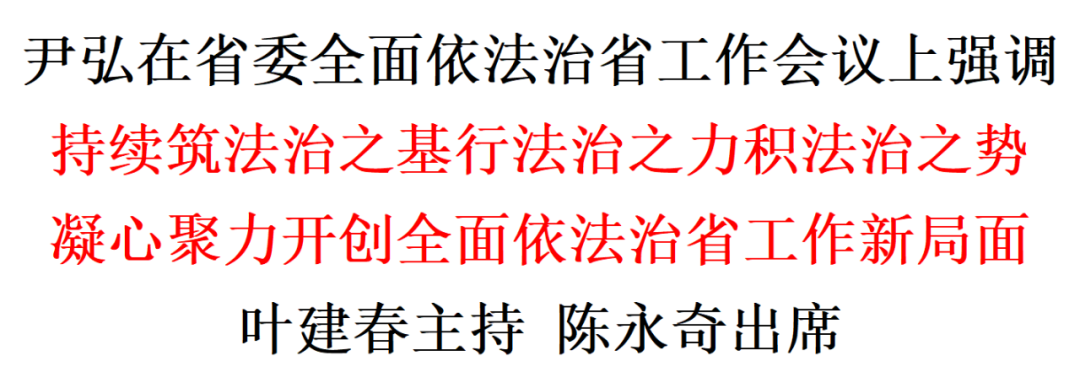 12月25日,省委全面依法治省工作会议在南昌召开。省委书记尹弘出席并讲话,他强调,要坚持不懈深学细悟笃行习近平法治思想,深入贯彻习近平总书记对全面依法治国工作作出的重要指示和中央全面依法治国工作会议精神,以推动高质量发展为主题,以改革创新为根本动力,持续筑法治之基、行法治之力、积法治之势,凝心聚力开创新征程全面依法治省工作新局面,为谱写中国式现代化江西篇章提供坚强法治保障。