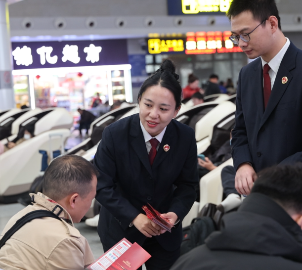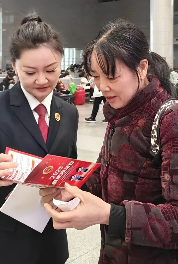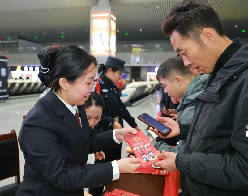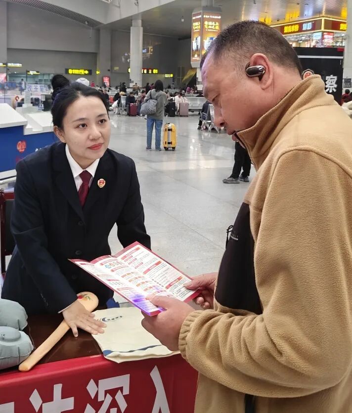 不少旅客停下匆忙的脚步,或认真翻阅手中的宣传折页,或与干警们倾谈自己在生活中遇到的法律困惑。检察干警们耐心解答旅客的问题,结合日常出行、劳动就业、消费维权等生活场景,用一个个通俗易懂的具体案例,向旅客们讲解宪法相关知识。